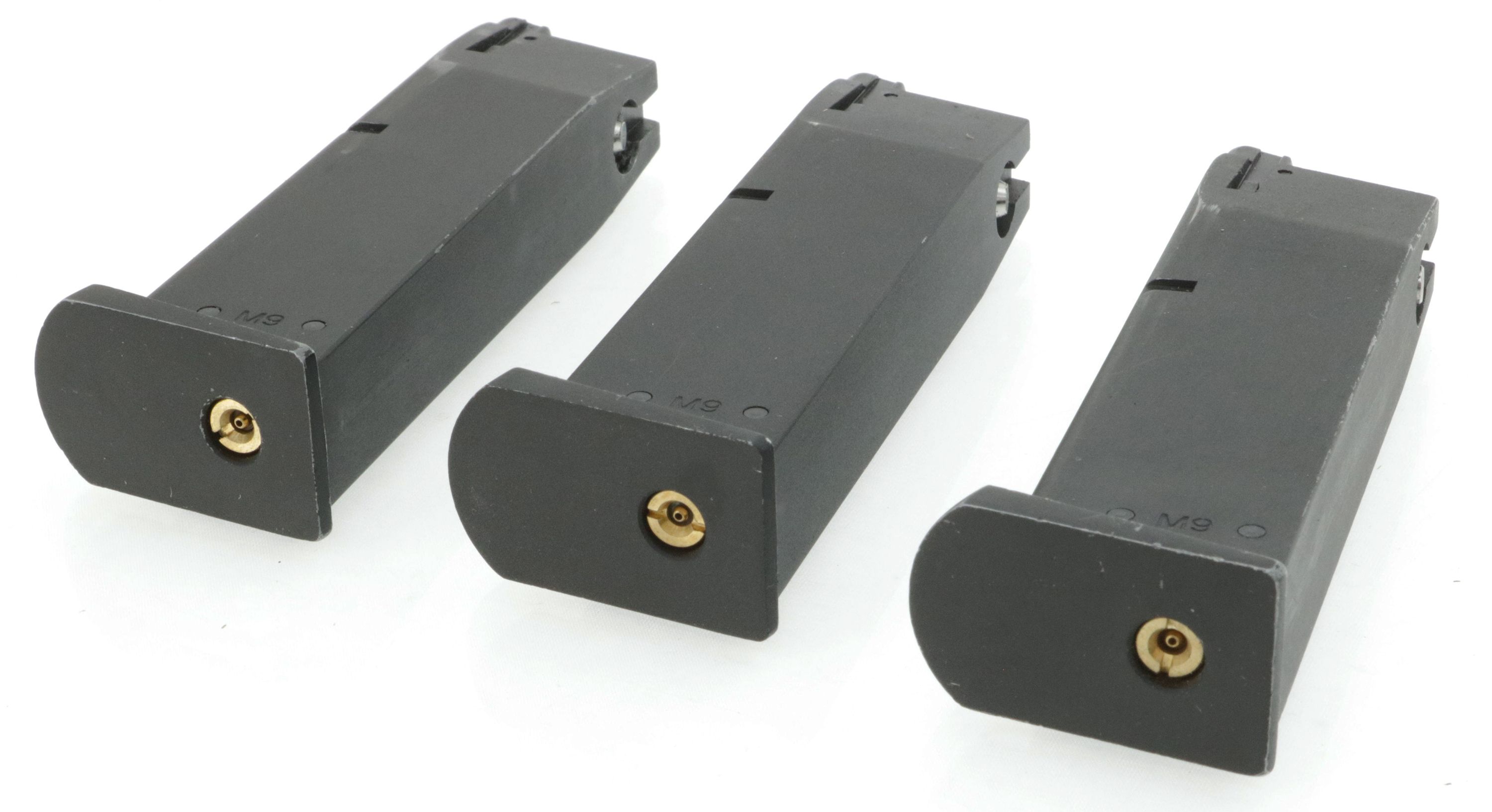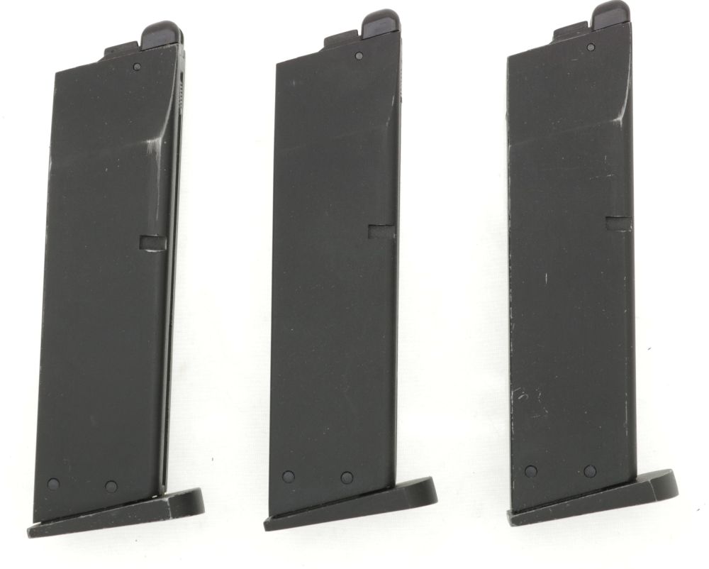 3x Magazin für KJW M9 Serie, 25 BBs - GAS Version (2x mit Begadi Stainless Efficiency Ventil , 1x mit Original Ventil) - alle dicht !