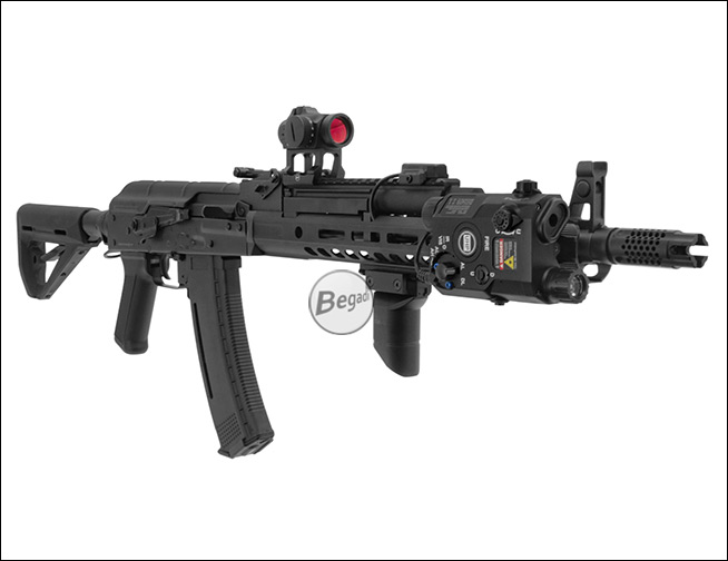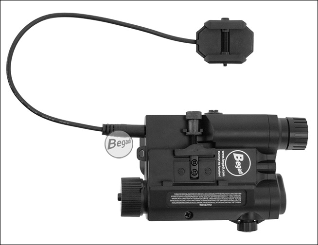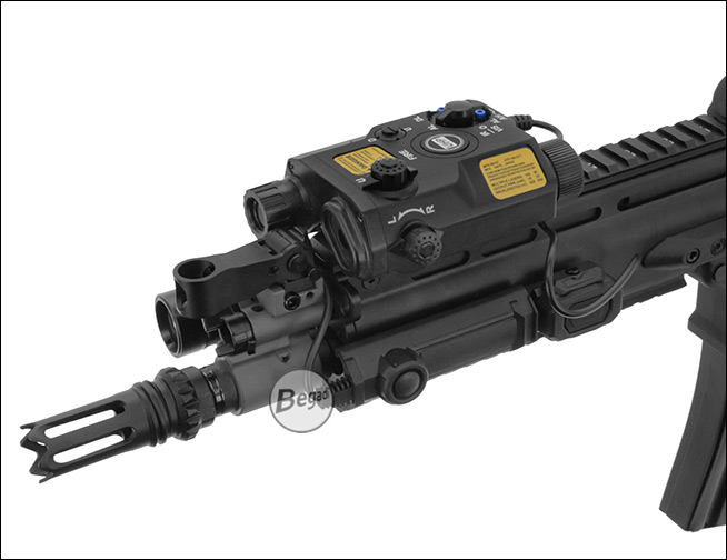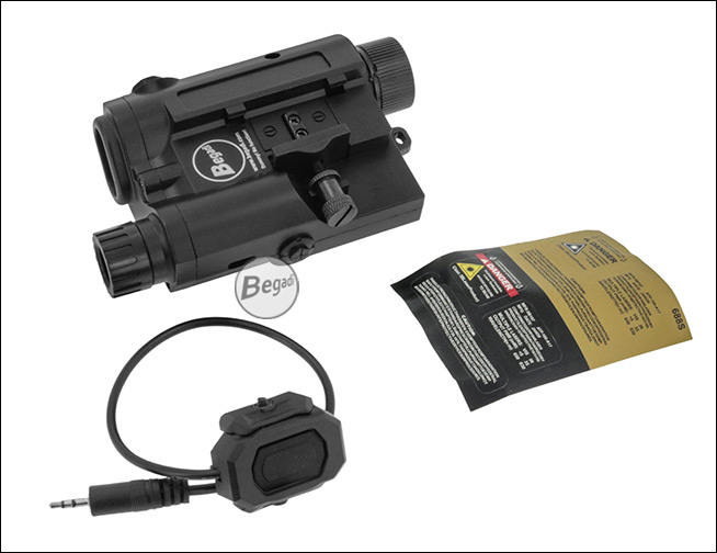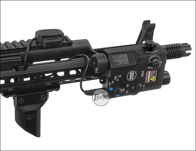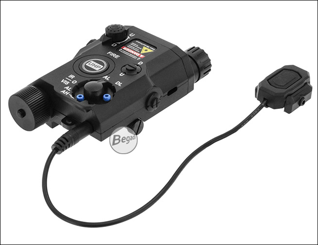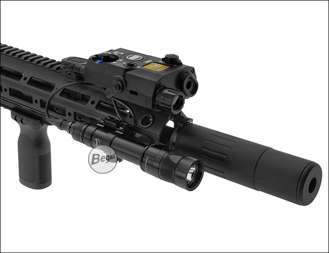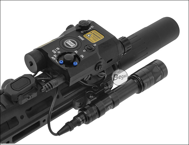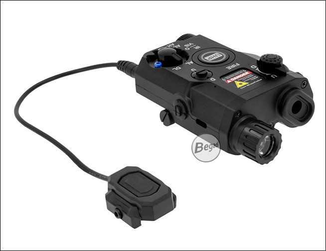 Preiswerte, aber hochwertige Laser – Licht Attrappe "ATPIAL AN-PEQ-15", aus ABS - mit Deko Kabelschalter, für Picatinny Montage.