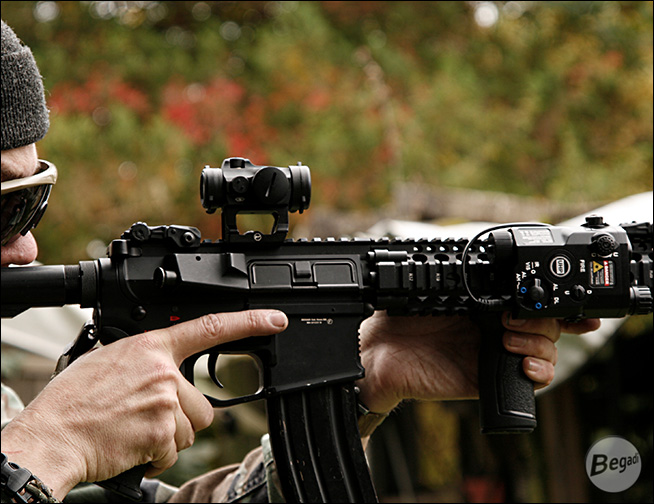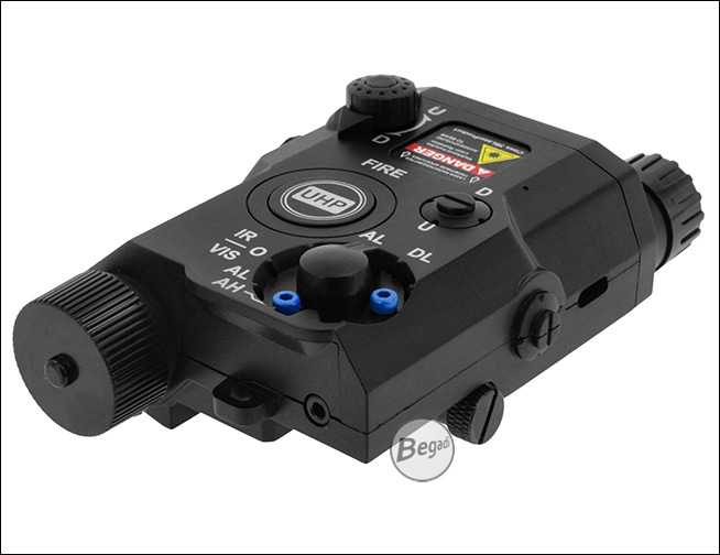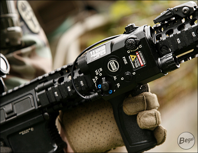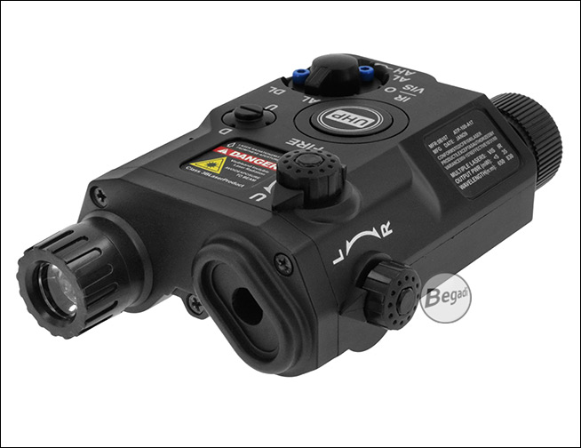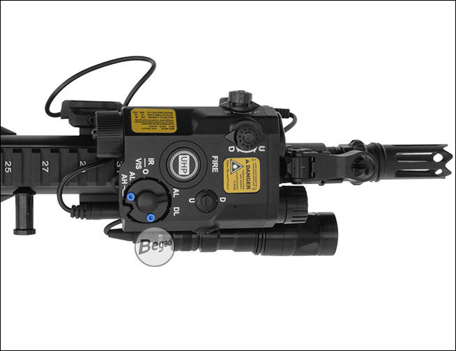 Das PEQ-15 (gängiger Name für "Advanced Target Pointer Illuminator Aiming Laser, Army/Navy Portable Laser Combination" oder ATPIAL AN-PEQ-15, basierend auf der Nomenklatur der US Armee, AN = Army/Navy. P = Portable. E = Laser. Q = Special oder Combination) ist eines der bekanntesten Laser-Licht Module der GWOT Era.Bei unserem "ATPIAL AN-PEQ-15" handelt es sich um eine Laser - Licht Modul Attrappe, die nach unseren Vorgaben gebaut wurde. Da sie von Grund auf als Attrappe gebaut wurde, statt ein Laser/Licht Modul nachträglich zu deaktivieren, ist der Dummy somit ohne jede relevante Funktion!