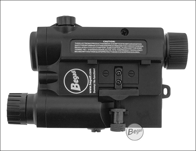 Diese Attrappe ist ein rein optisches Zubehör und ist weder mit zielbeleuchtenden Möglichkeiten ausgestattet, noch kann es darauf umgebaut werden! |