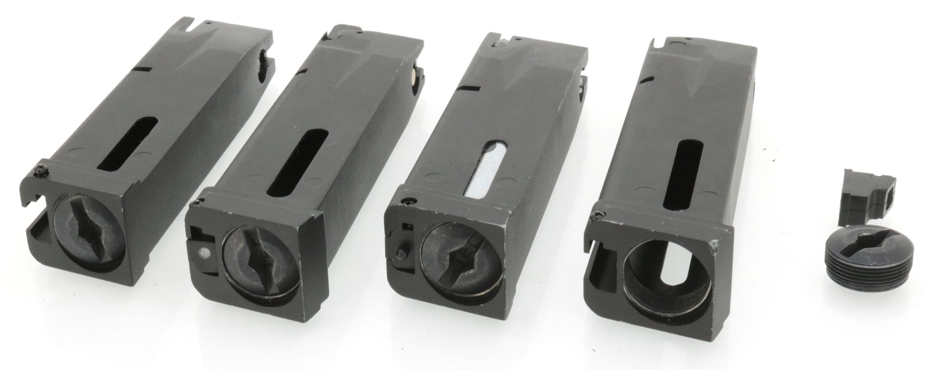 4x Magazin für KJW KP-01 Serie, 24 BBs - CO2 Version - teils mit Begadi Stainless Efficiency Ventil - für Bastler !