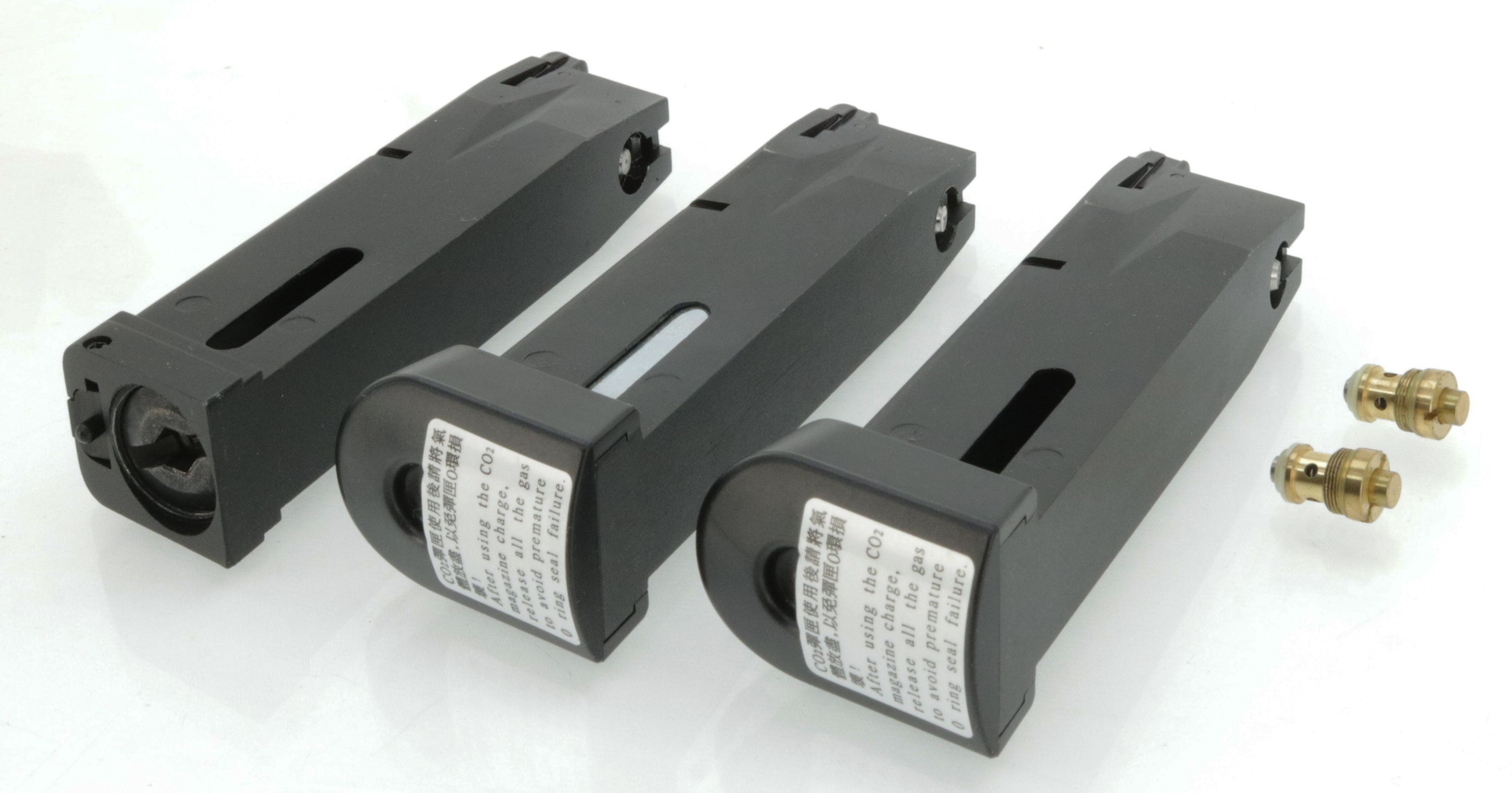 Zustandsbeschreibung:3x Magazin für KJW M9 Serie, 25 BBs - CO2 Version - mit Begadi Stainless Efficiency Ventil - dicht und funktional. Mit 2x KJW Originalventil als Zusatz