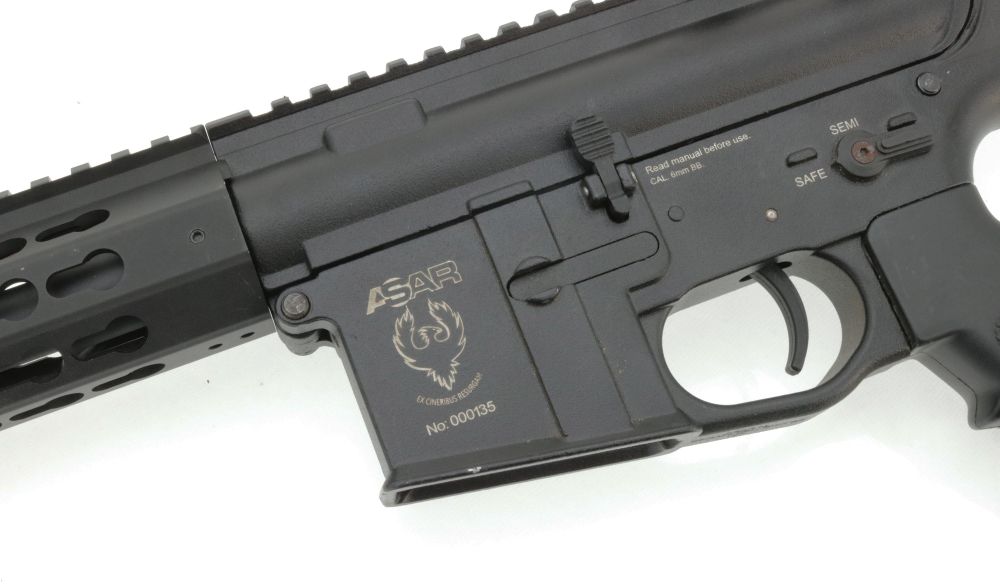 Der Fokus bei der ASAR liegt im Bereich Qualität und Funktion. Das Ziel war und ist es, eine S-AEG mit den Features einer PTW (Professional Training Weapon) mit den Internals einer normaler S-AEGs herzustellen. Die weiteren technischen Highlights nennen wir weiter unten in den Eigenschaften. Das äußere Erscheinungsbild der ASAR ist recht klassisch, kein optisches Highlight. Auch ist die Verarbeitungsqualität des Receivers in puncto Feeling & Optik noch nicht auf dem Niveau wie man es z.B. von VFC etc. kennt. Das Gehäuse ist stabil und der Hersteller gibt auch 3 Jahre Garantie, das Gehäuse wird halten – lediglich beim Finish müssen bei der ASAR Abstriche gemacht werden.