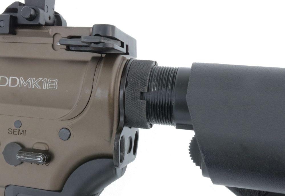 Dieser kann, da die Waffe dem entsprechend mit Laufbuchsen und Stahlgears ausgestattet ist, einfach nachgerüstet werden.