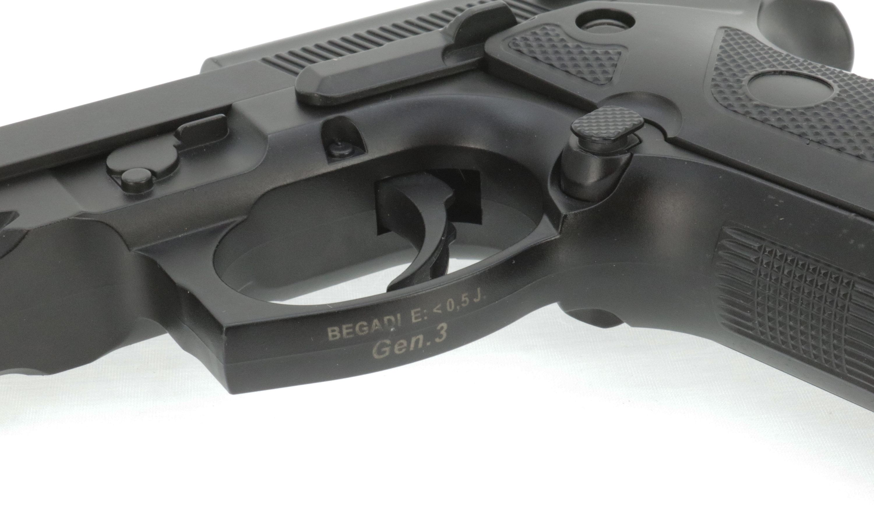 Die Energie der Waffe liegt zwischen 0,34 uns 0,39 Joule.
