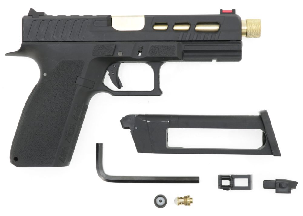 KJW KP-13 "PRO" GBB, CO2 Version, mit Begadi Stainless Efficiency Ventil, CNC Alu Pistonhead, Koffer & Maintenance Kit -tactical / gold- (frei ab 18 J.)