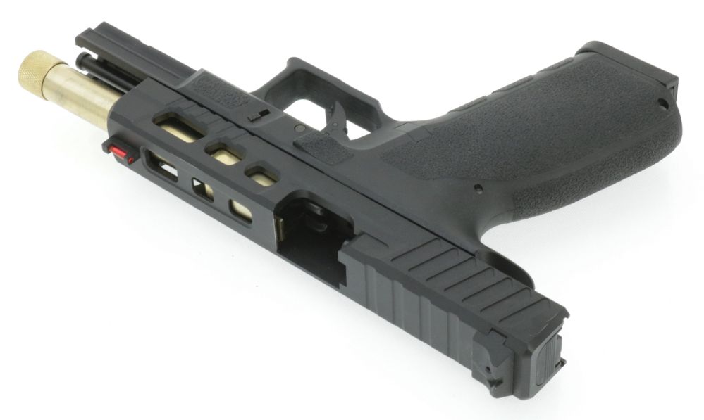 Waffe hat Lackabplatzer vorne am Schlitten, Kratzer am Outerbarrel sowie allgemein leichte Gebrauchsspuren