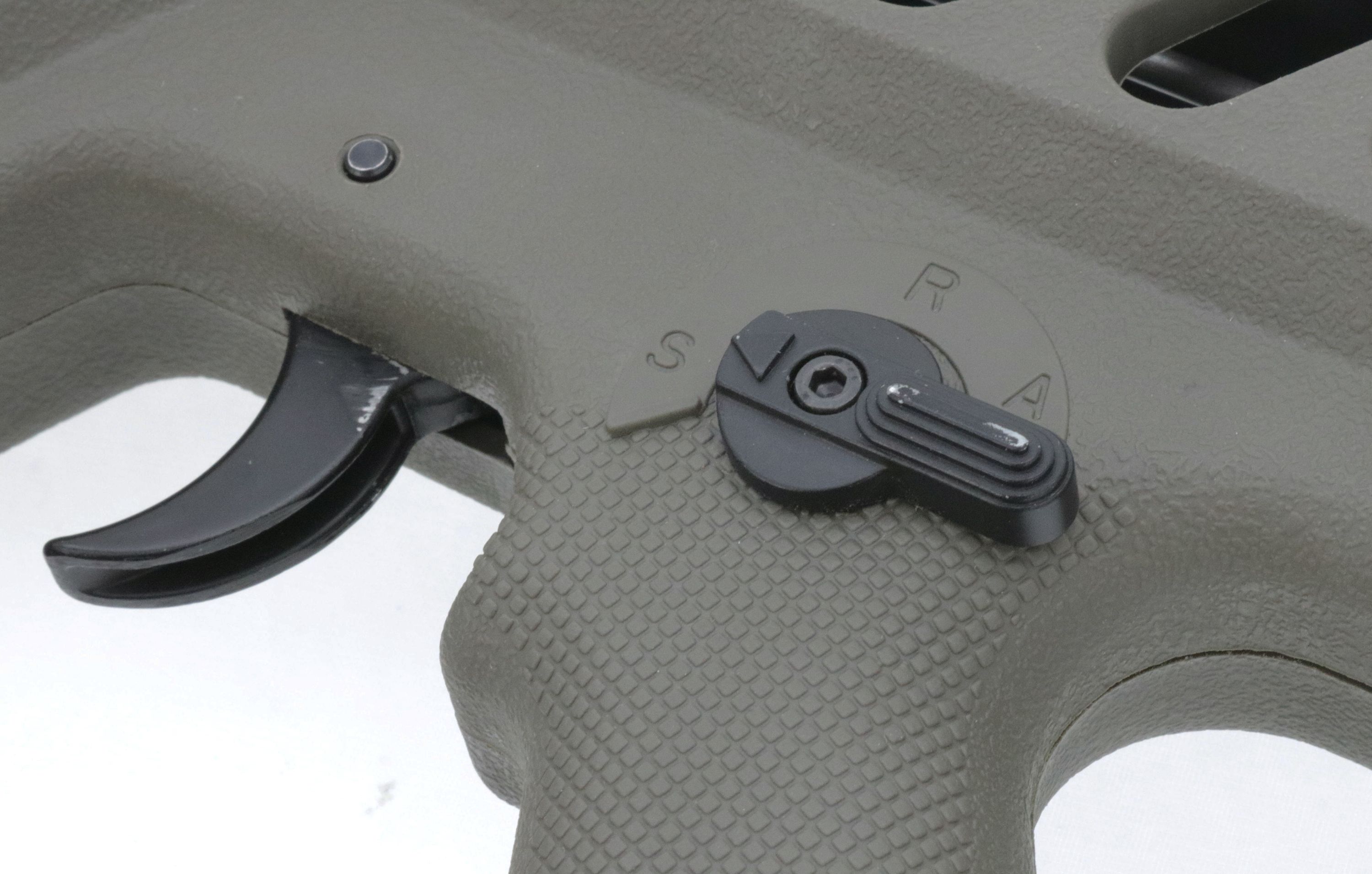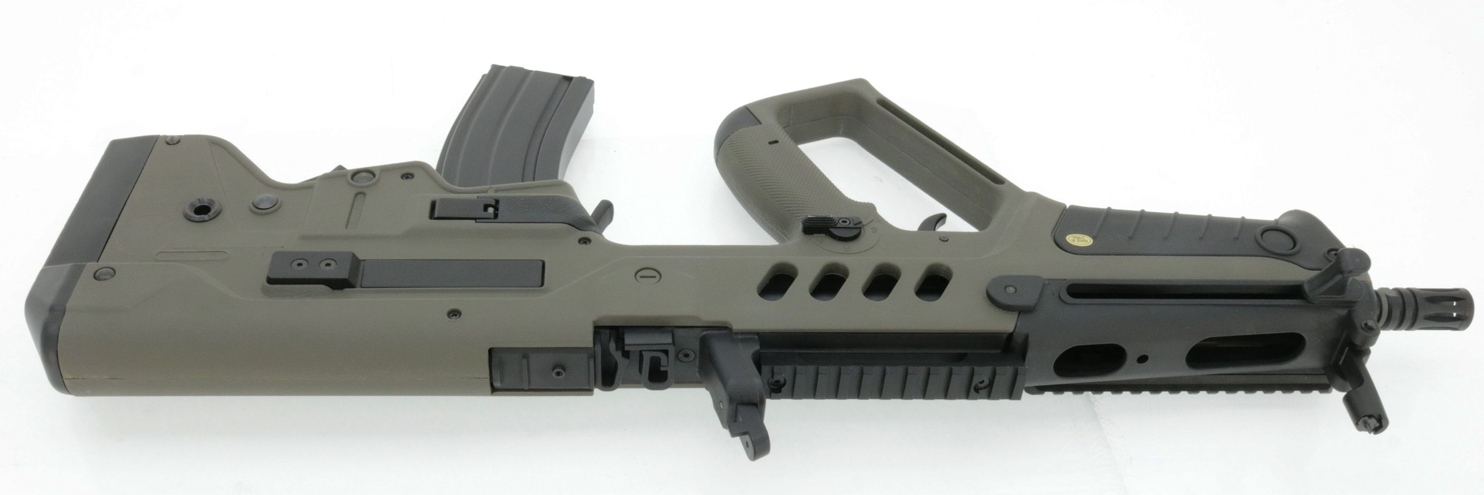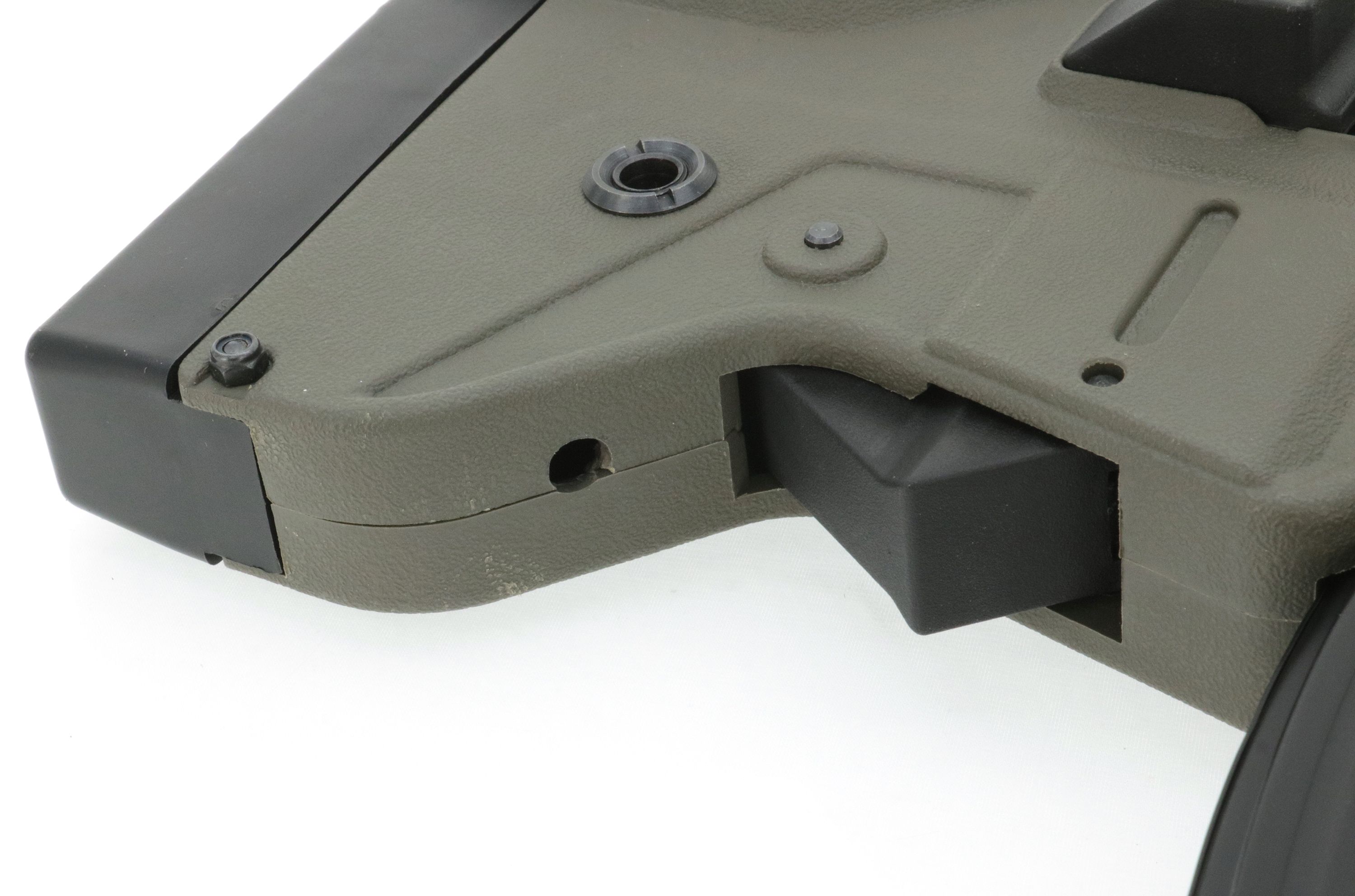 Waffe hat Kratzer und Gebrauchsspuren sowie ein Loch hinten/unten am Boltrelease