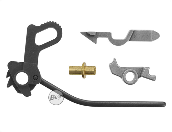 » Upgradeteile aus gehärtetem Stahl: Sear, Disconnector und Hammer plus Gestänge» Passend nur für die KJW KP-07 Serie
